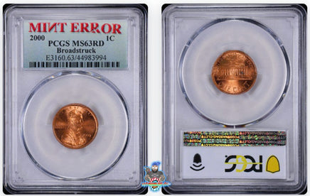 2000 1C Mint Error Broadstruck PCGS MS63 RD 44999976