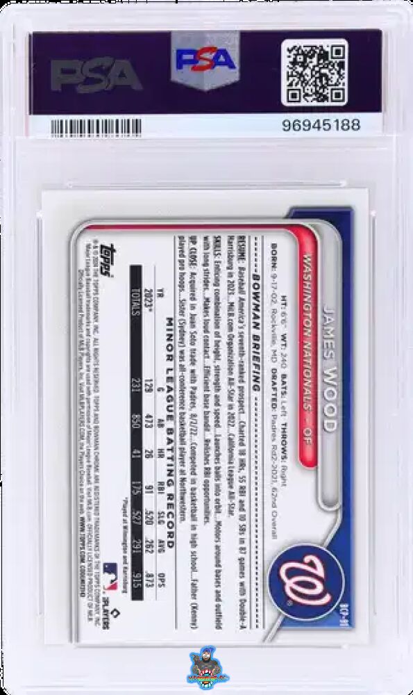 2024 James Woods PSA 10 Bowman Sapphire Chrome Prospect Auto #BCP91 1/5