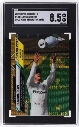 2020 Lewis Hamilton SGC 8.5 Topps Chrome F1 Gold Wave Refractor #144 28/50