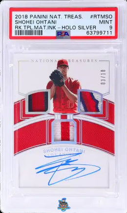 2018 Shohei Ohtani PSA 9 National Treasures Rookie Used Patch Hard Auto 03/10