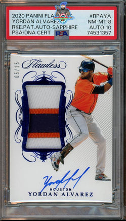 2020 Yordan Alvarez PSA 8 10 Flawless Rookie Patch Auto Sapph #RPAYA 5/15