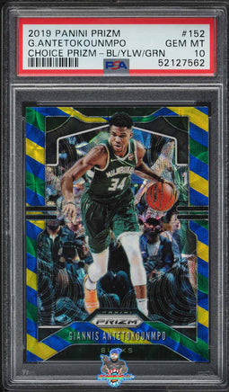 2019 Giannis Antetokounmpo PSA 10 Prizm Choice Prizm Blue Yellow Green #152