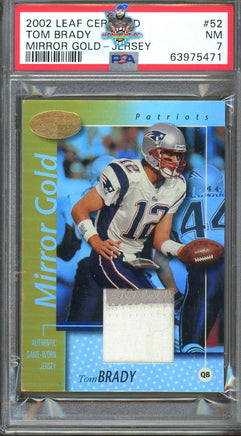 2002 Tom Brady PSA 7 Leaf Certified Mirror Gold Jersey #52 5/25