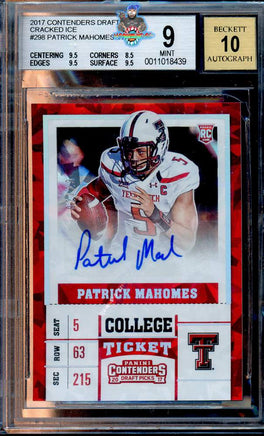 2017 Patrick Mahomes BGS 9 10 Contenders Draft Pics Cracked Ice Auto #298 2/23