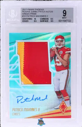 2017 Patrick Mahomes BGS 9 10 Phoenix Rookie Jumbo Patch Auto Green Prime 4/5