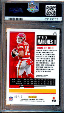 2020 Patrick Mahomes PSA 9 Contenders Optic Veteran Ticket Cracked Ice Auto #VT5