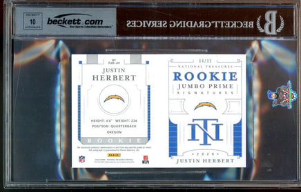 2020 Justin Herbert BGS 9 10 National Treasures Rookie Patch Auto Bklt 84/99