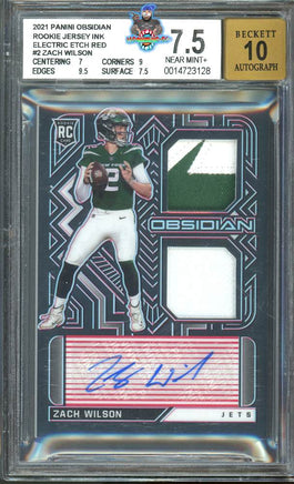 2021 Zach Wilson BGS 7.5 10 Obsidian Rookie Auto Red Etch #RJIZW