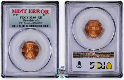 1999 1C Mint Error Broadstruck PCGS MS64 RD 44998290