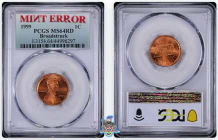 1999 1C Mint Error Broadstruck PCGS MS64 RD 44998297