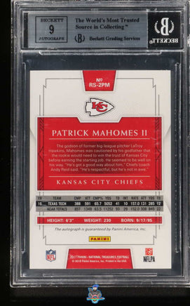2017 Patrick Mahomes BGS 9 9 National Treasures Rookie Auto #RS2PM 28/99