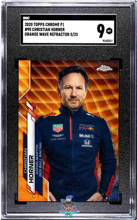 2020 Christian Horner SGC 9 Topps Chrome F1 Orange Wave Refractor #90 5/25