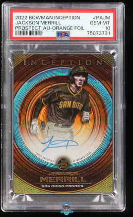 2022 Jackson Merrill PSA 10 Bowman Inception Pros Auto Orange Foil #PAJM /25