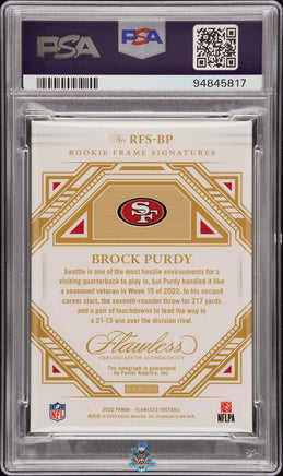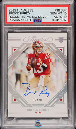 2022 Brock Purdy PSA 10 10 Flawless Rookie Frame Auto Silver #RFSBP 2/20