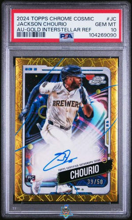 2024 Jackson Chourio PSA 10 Topps Chrome Cosmic Rke Auto Gld Interst Ref 39/50